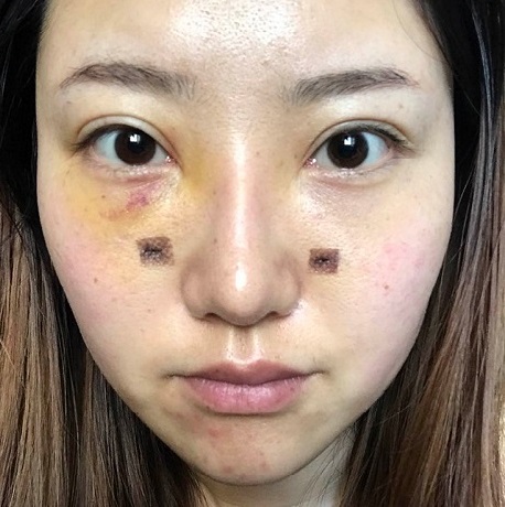現(xiàn)在恢復越來越好,你可以感覺到紅腫也在慢慢消退。現(xiàn)在眼睛周圍真的越來越光滑,感覺越來越柔軟。雖然仍然有一些針眼,但它會慢慢恢復。你可以看到整個人真的越來越不同了,比以前年輕多了,整個臉也越來越小,非常三維的感覺。對于這種效果,我真的很喜歡它。