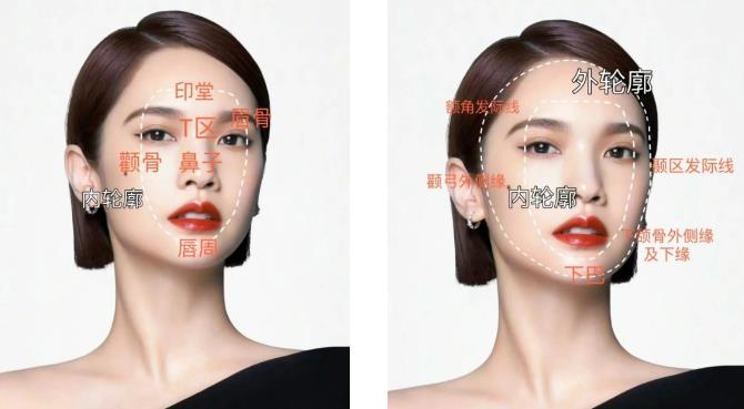 內(nèi)輪廓就是我們的T區(qū)鼻子、眉骨、印堂;